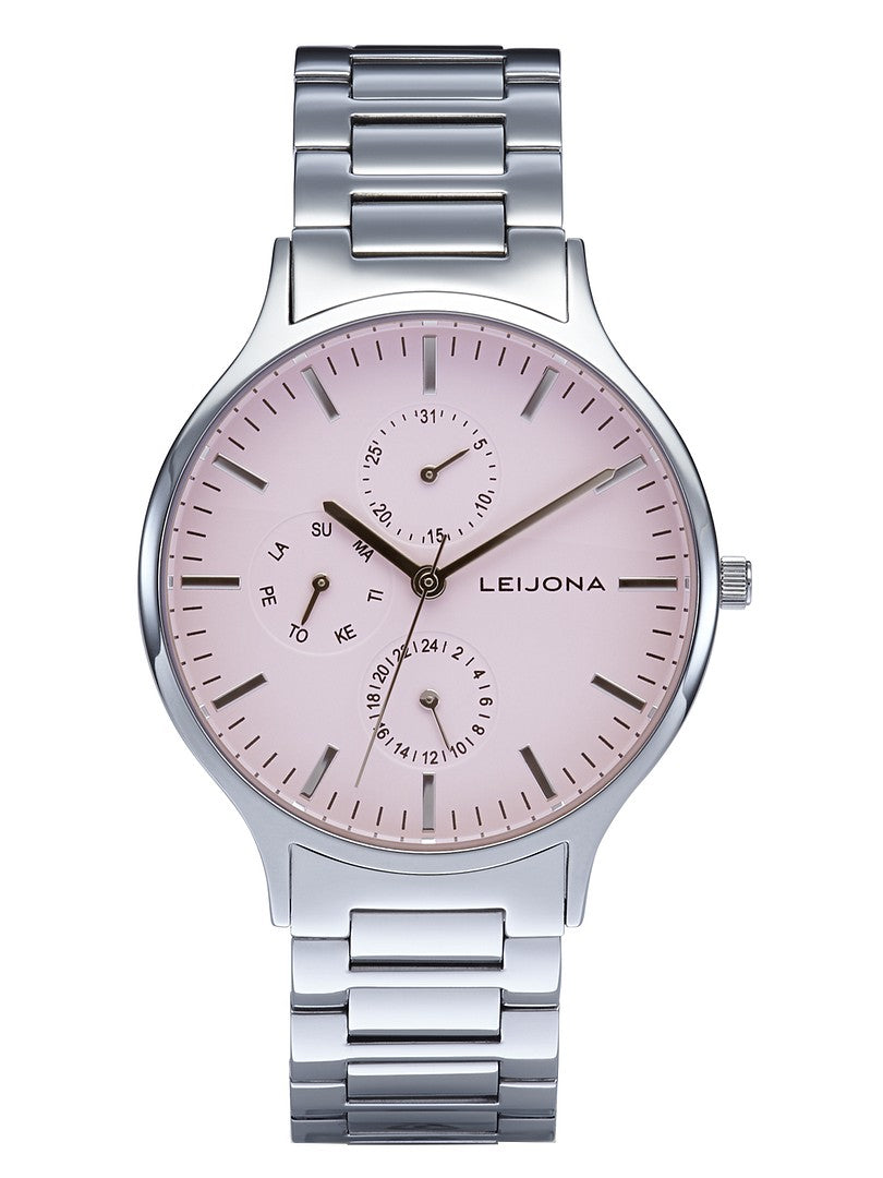 - Kellotaulu: Vaaleanpuna sävyinen, joka tuo raikkaan ja ainutlaatuisen ilmeen.