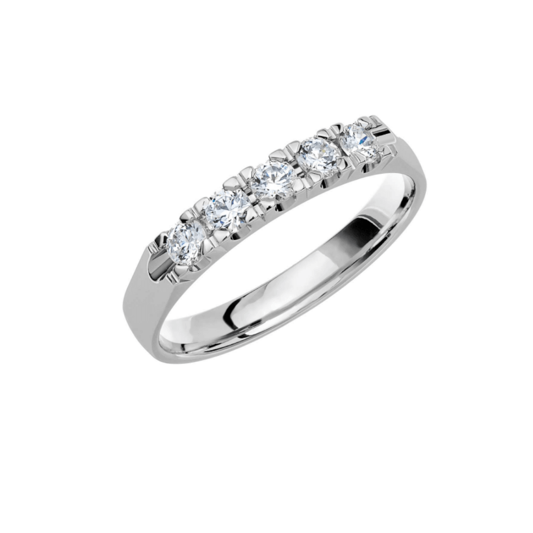 - Timantit: Yhteensä 0,35 ct (5 x 0,07 ct), laadukkaat W/Vs timantit