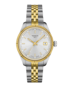 Tissot Ballade 34mm T156.210.22.031.00 on elegantti naisten rannekello, joka yhdistää perinteisen sveitsiläisen kellosepän taidon moderniin muotoiluun. Kellossa on hopeanvärinen guilloché-kuvioitu kellotaulu, jota ympäröi keltakullan sävyinen uurrettu kehä, korostaen klassista ilmettä.