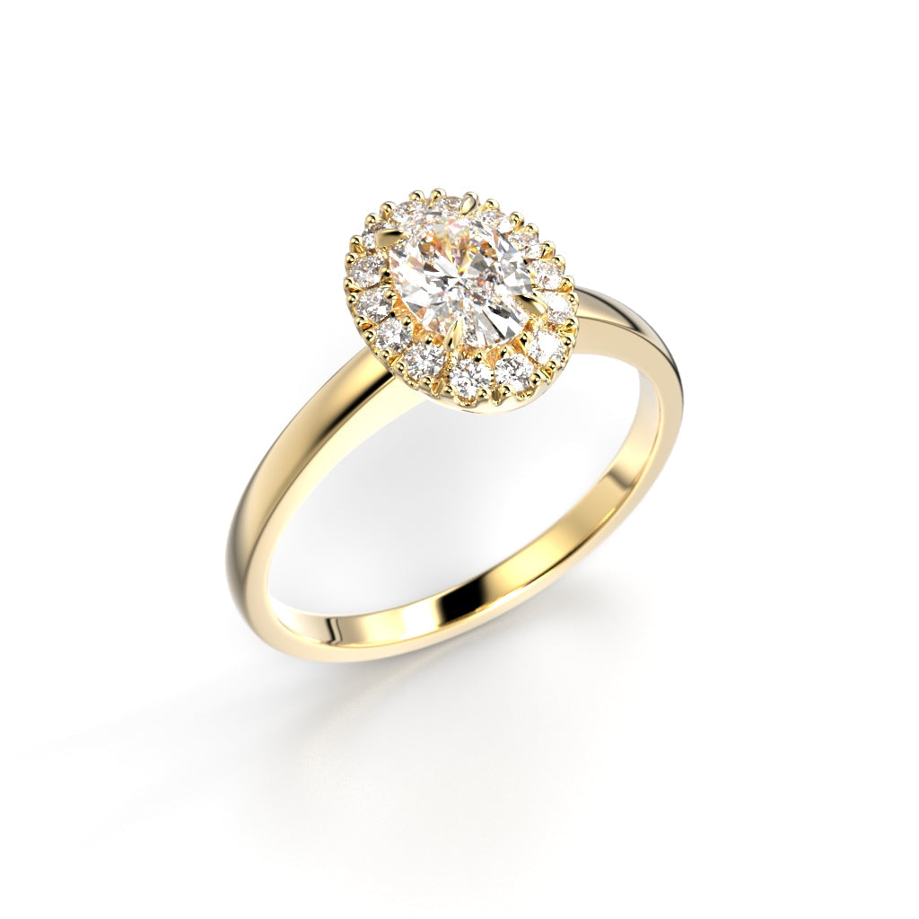 14 karaatin keltakulta korostaa timanttien lämpöä ja tuo koruun klassisen ylellisyyden. Tämä halo-sormus on täydellinen valinta vihkisormukseksi, kihlasormukseksi tai lahjaksi ikimuistoiseen hetkeen.