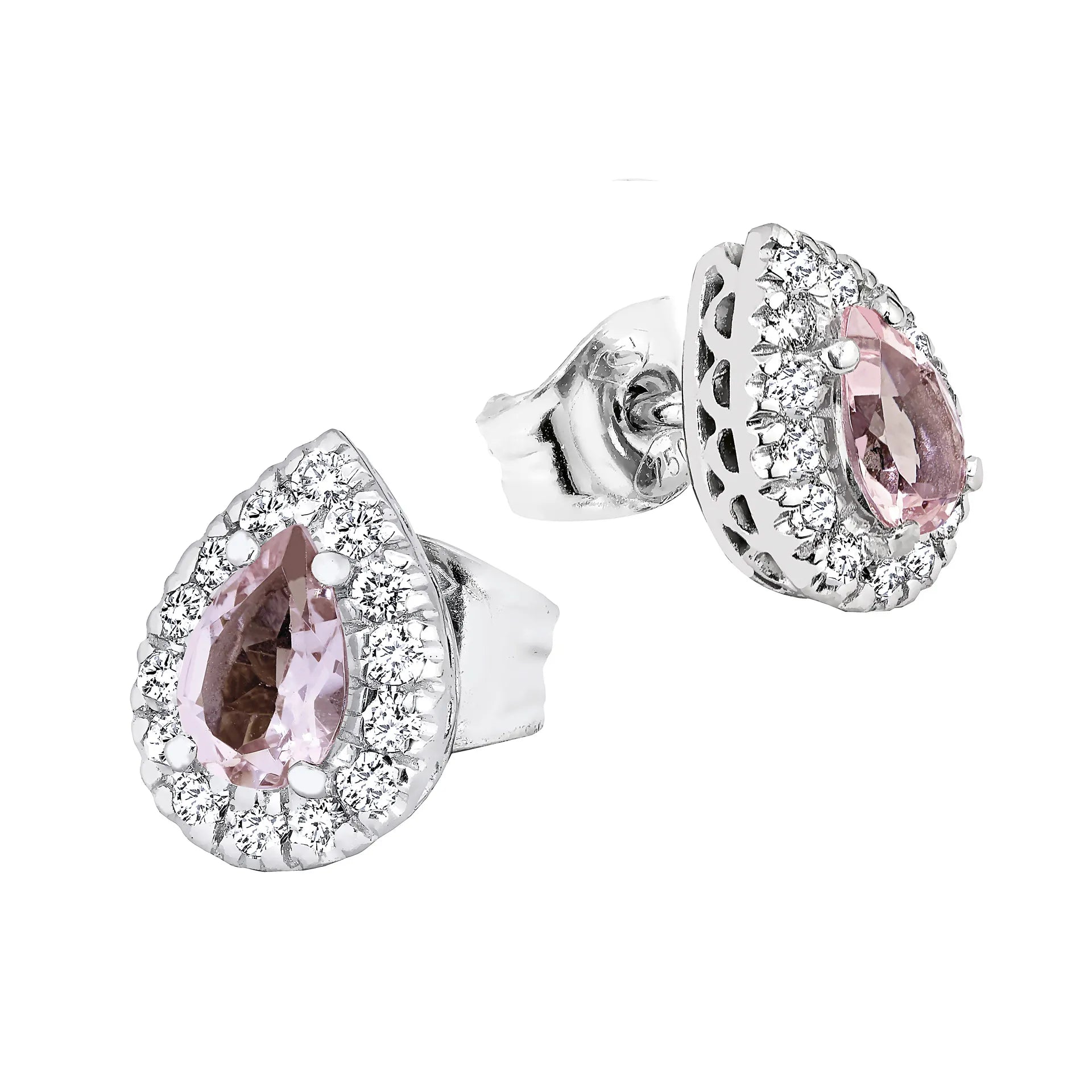 Toivomuslähde V-660w korvakorujen keskikiveksi on saatavissa timantin ohella myös pisaranmuotoinen (pear shape) morganiitti, joko peach-sävyssä tai vaalean roosan sävyisenä (kuvassa).