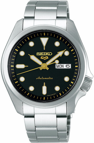 Seiko 5 Sports SRPE57K1 on automaattikello, jossa yhdistyvät Seikon vuosikymmenten kellonvalmistusperinne, ajaton design ja nykyaikainen tekniikka. Kellon kullanhohtoiset yksityiskohdat ja musta kellotaulu luovat elegantin kokonaisuuden, joka erottuu hillitysti – täydellinen valinta miehelle, joka arvostaa laatua ja tyyliä.