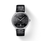 Tissot Carson Premium Powermatic 80 on huippuluokan miesten automaattikello, joka yhdistää tyylikkyyden ja huipputeknologian. Mustalla kellotaululla ja mustalla nahkarannekkeella varustettu kello erottuu elegantilla muotoilullaan. Tämä kello ei ainoastaan näytä hyvältä ranteessasi, vaan sisältää myös Powermatic 80 automaattikoneiston, joka tarjoaa jopa 80 tunnin käyntivarannon.